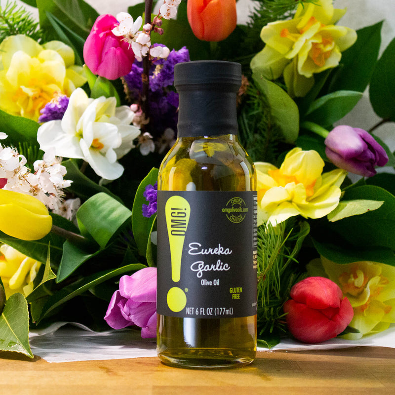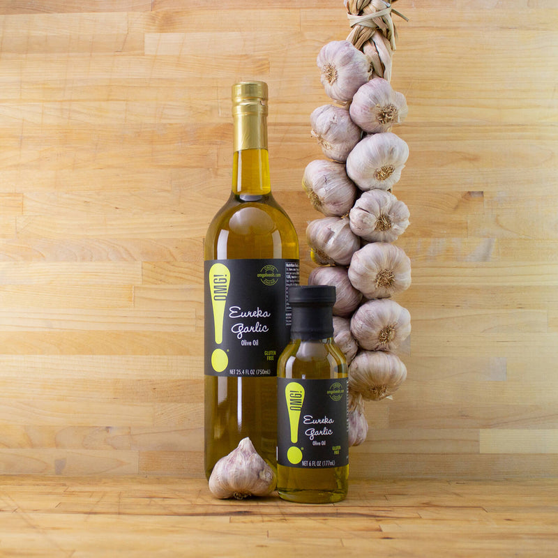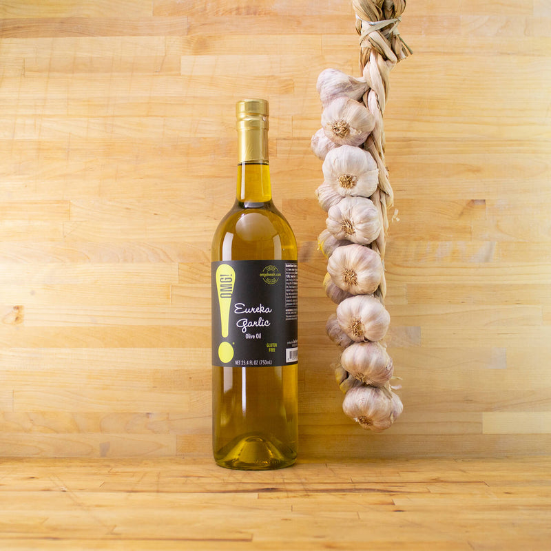 A friend once said a good garlic olive oil should make you say "You reek of Garlic", and this is it! Our garlic olive oil is a 50/50 blend of fresh and roasted garlic flavored extra virgin olive oil.