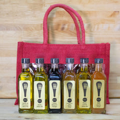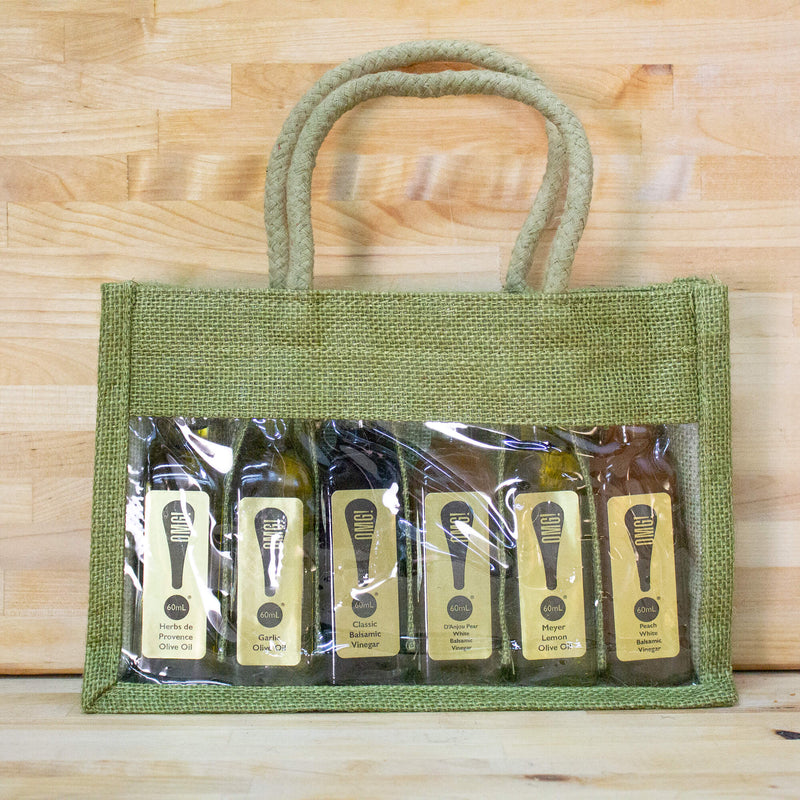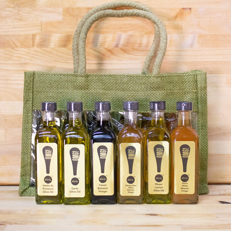 Includes: Meyer Lemon Olive Oil, Peach White Balsamic Vinegar, Herbs De Provence Olive Oil, Lemon White Balsamic Vinegar, Classic Barrel-Aged Balsamic and Garlic Olive Oil.